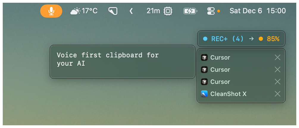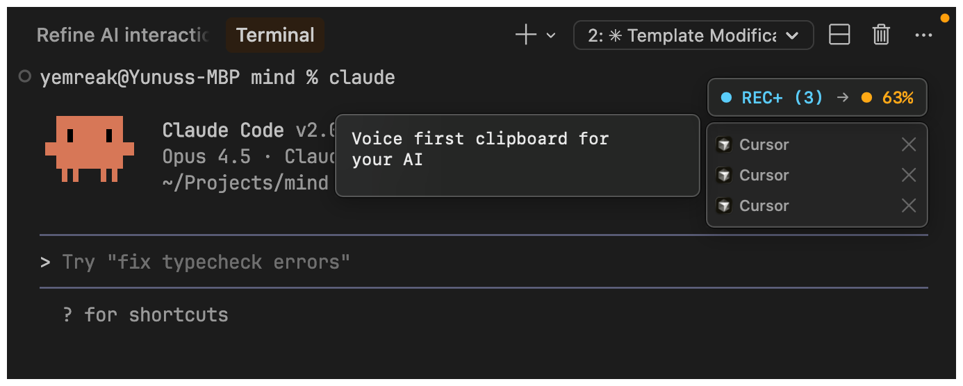 Konuşurken kopyalıyorum. Ama bir sürü "bu, o, şu, bu, o" diyorum. En son "bu" derken neyi kastettiğimi AI anlamıyor. Çünkü clipboard'a kopyaladıklarım konuşmanın sonunda toplu geliyor — konuşmayla senkron değil.